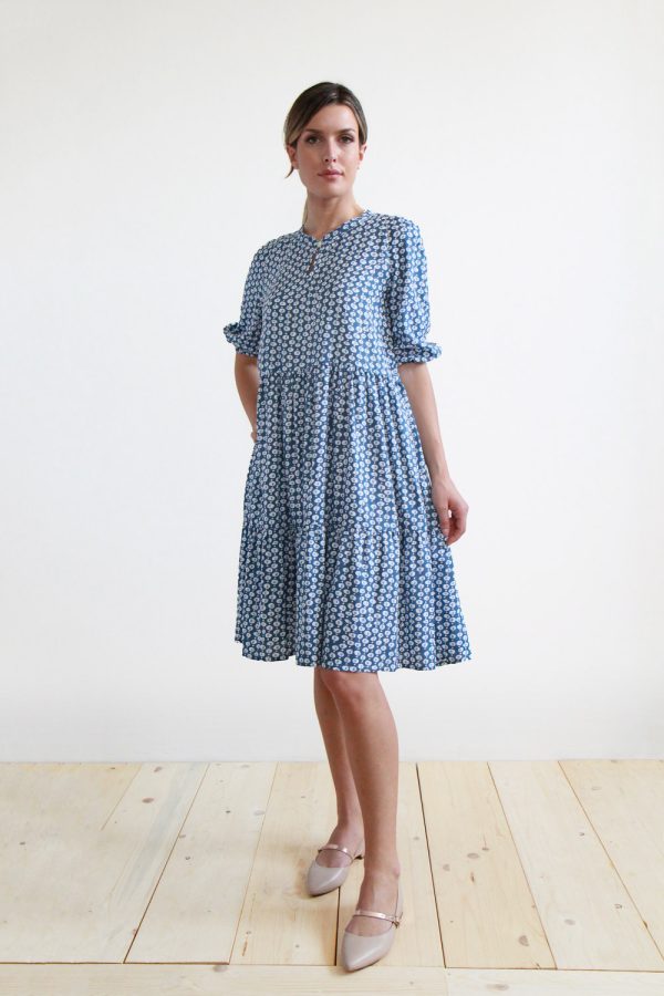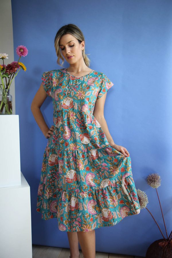 75,00 €Abito in leggero cotone con stampa a mano block print. Vestibilità ampia, lunghezza sotto il ginocchio, taglio sotto il seno con arricciatura della gonna e due balze arricciate. Scollatura tonda , manche corte, apertura sul dietro con bottoncino in cocco. Altezza modellla: 1,73 e indossa taglia unica Cura prodotto: Lavaggio […]
