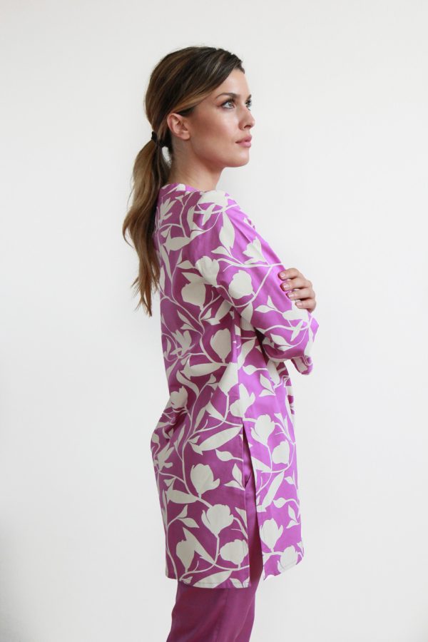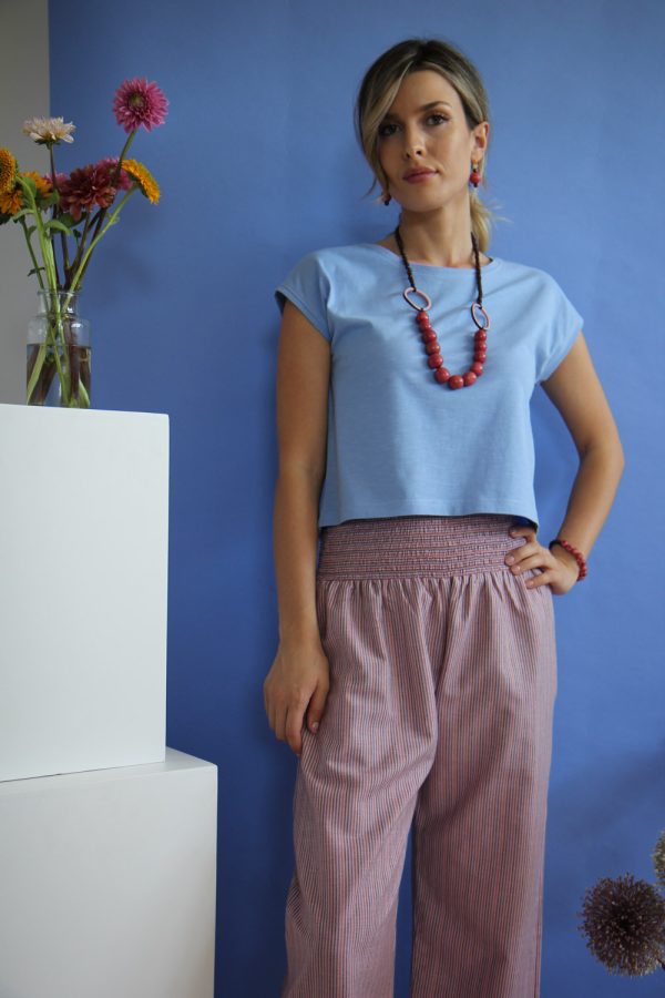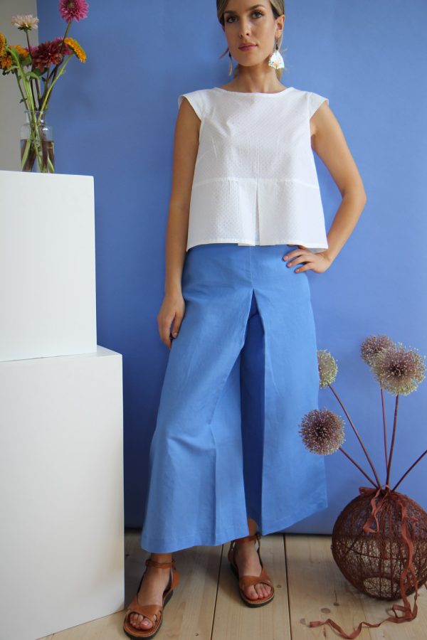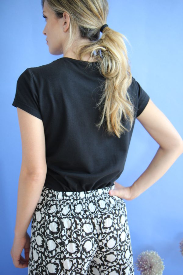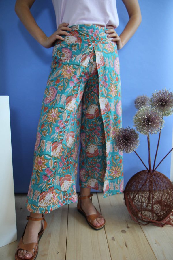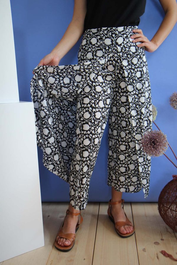 65,00 €Pantaloni in leggerissimo cotone con stampa a mano block print. Modello a palazzo, lunghezza alla caviglia con la gamba aperta lateralmente e avvolta a creare una sorta di gonna lunga. Baschina in vita sul fronte e banda elastica sul dietro per permettere una ottima vestibilità e confort. Altezza modellla: 1,73 […]