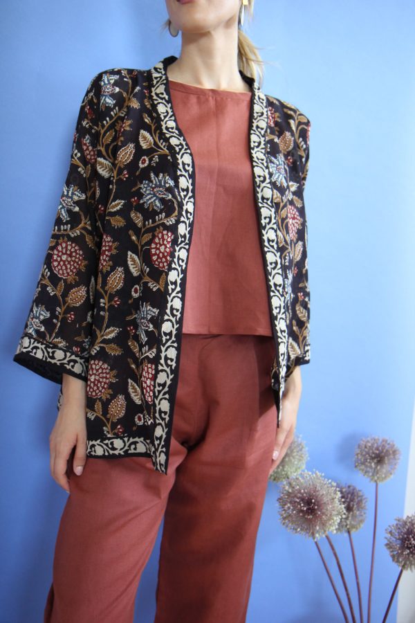 40,00 €Giacca kimono corto in cotone leggerissimo con stampa a mano block print. Altezza modellla: 1,73 e indossa taglia unica Cura prodotto: Lavaggio a mano temperatura massima 30°, detergere il capo con un detersivo ecologico o il semplice sapone di marsiglia. Il capo non può essere asciugato in tamburo, lasciare il […]