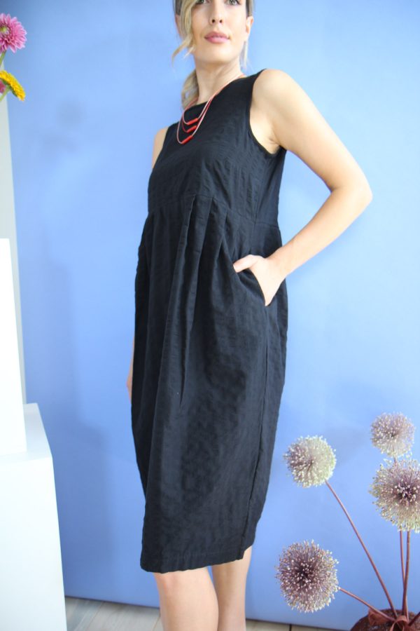 85,00 €Abito smanicato corto in misto lino e cotone leggero. Linea a trapezio con piega laterale sul fronte. Scollo a giro e chiusura sul retro con bottone in madreperla. Tasche inserite sui fianchi. Altezza modellla: 1,73 e indossa taglia S Cura prodotto: Lavaggio a mano o in lavatrice temperatura massima 30°. […]
