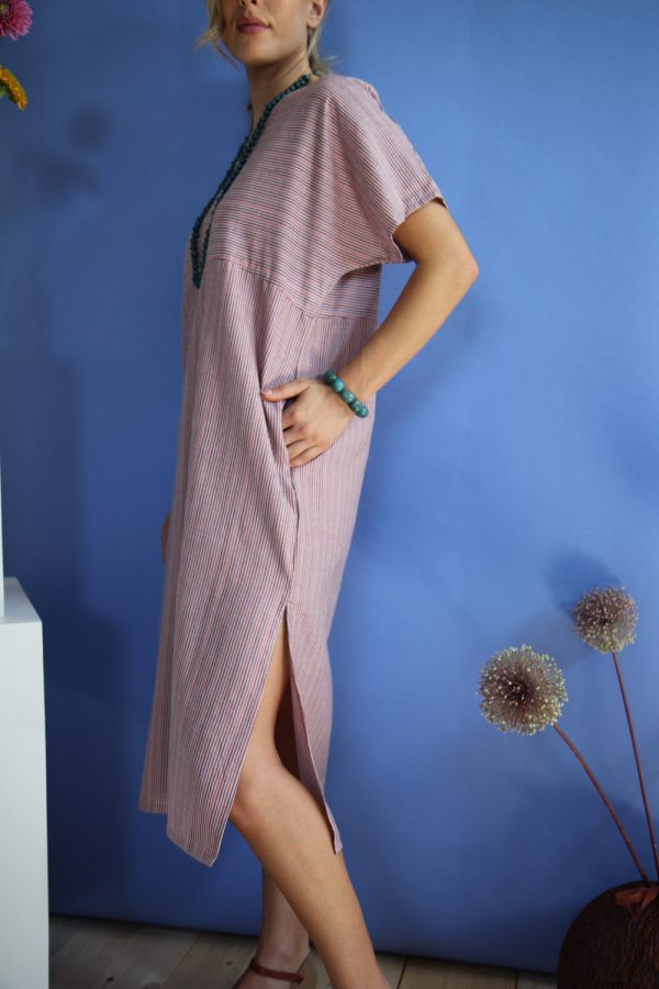 65,00 €Abito a manica corta in morbido cotone multirighe, lunghezza al polpaccio. Vestibilità ampia, linea dritta con taglio sotto il seno, corpetto a kimono, spacchi profondi sui fianchi , tasche invisibili sui fianchi e scollatura a V. Altezza modellla: 1,73 e indossa taglia S Cura prodotto: Lavaggio a mano o in […]
