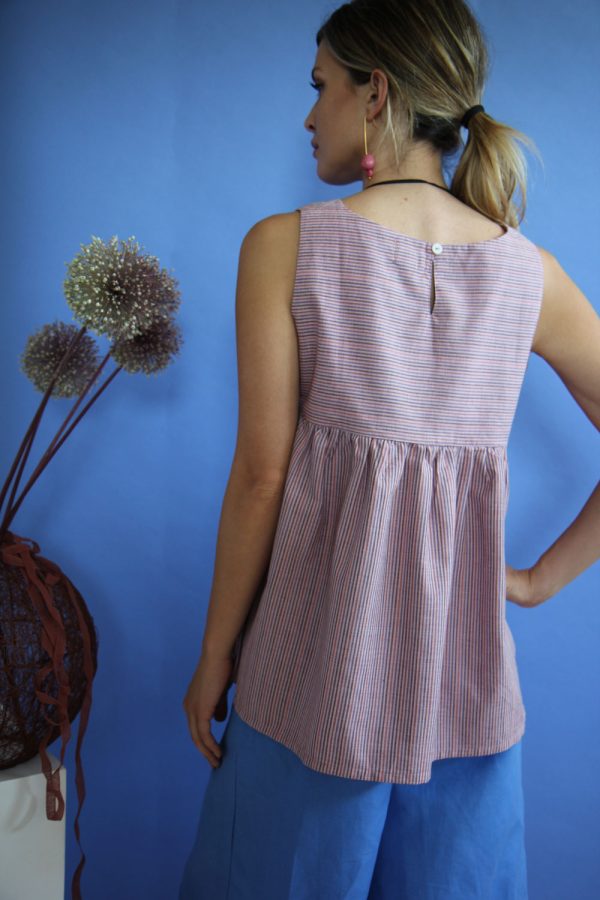 50,00 €Top smanicato in misto lino e cotone. Vestibilità regolare, linea svasata, scollatura tonda e ampia, spalle larghe e due tagli che assorbono le due riprese sul davanti rendono ancora più confortevole il capo. Altezza modellla: 1,60 e indossa taglia S Cura prodotto: Lavaggio a mano o in lavatrice temperatura massima […]
