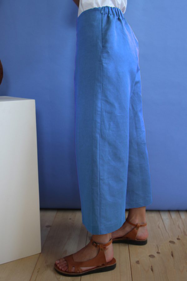 85,00 €Pantalone ampio lunghezza sotto il polpaccio in misto lino e cotone. Il dettaglio della profonda piega baciata al centro sul fronte dà un tocco di originalità al capo e unito alla fascia elastica in vita sul retro rende il capo confortevole da indossare in qualunque occasione. Zip sul fianco. Lampiezza […]