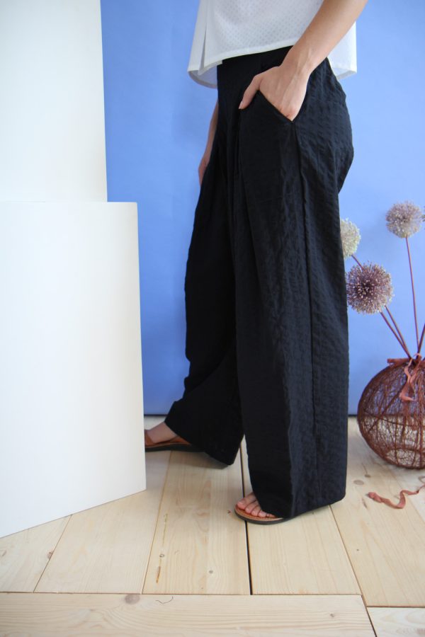 75,00 €Pantalone lungo a palazzo in cotone seersucker. Il modello è caratterizzato sul fronte da 6 pieghe e due tasche sui fianche alla francese, zip sul fianco e banda elastica sul retro. Altezza modellla: 1,73 e indossa taglia S Cura prodotto: Lavaggio a mano o in lavatrice temperatura massima 30°. Stiratura […]