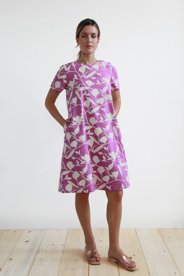 82,00 €Abito sopra al ginocchio in cotone popeline stampato. Modello dalla linea svasata, maniche corte con taglio a sella, collo a giro ampio e tasche inserite sui fianchi. Altezza modellla: 1,73 e indossa taglia S Cura prodotto: Lavaggio a mano o in lavatrice temperatura massima 30°. Stiratura ad una temperatura massima […]