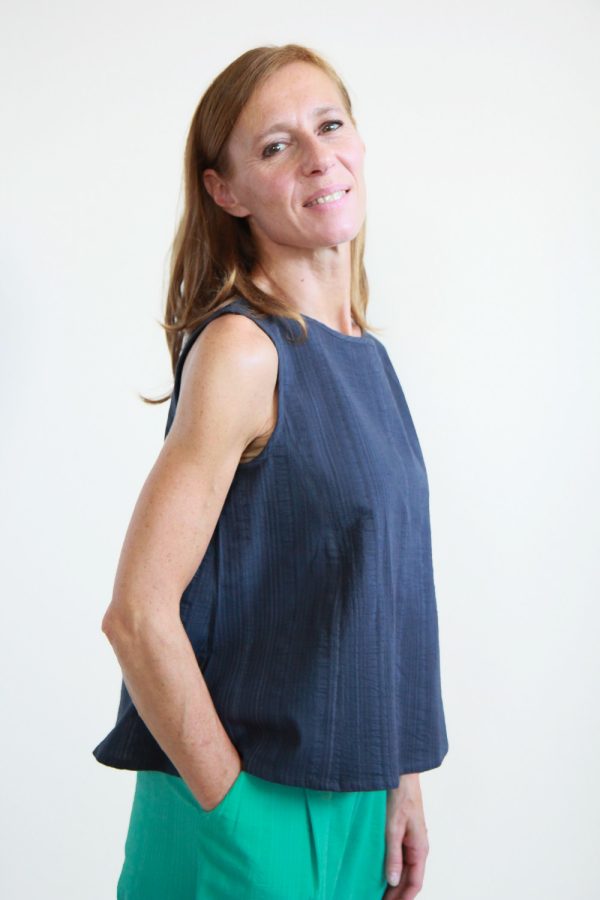 34,00 €Top smanicato in morbido jersey di cotone biologico certificato GOTS elasticizzato. Modello caratterizzato da uno scollo a giro e da una linea svasata. Altezza modellla: 1,73 e indossa taglia S Cura prodotto: Lavaggio in lavatrice temperatura massima 30°. Stiratura ad una temperatura massima di 110°C. Il capo non può essere […]
