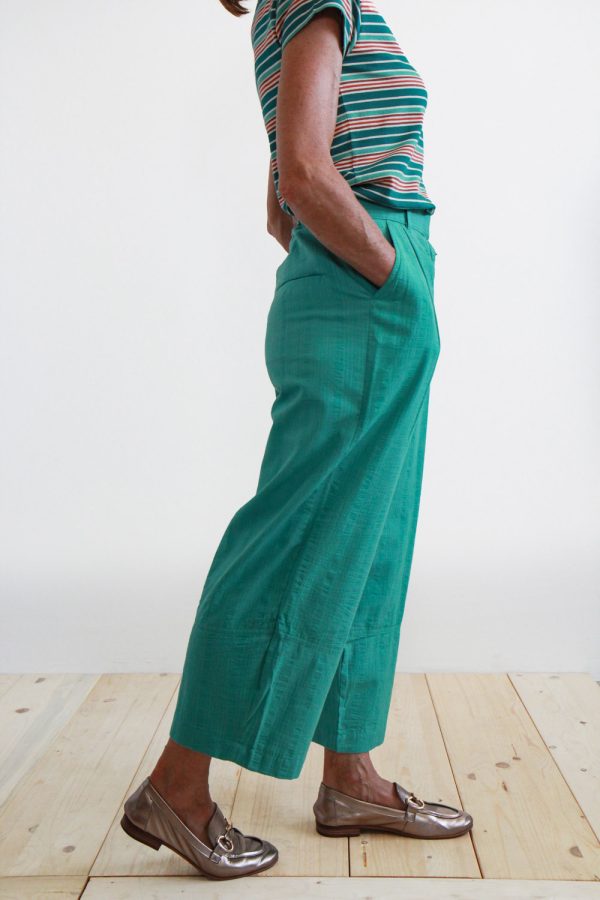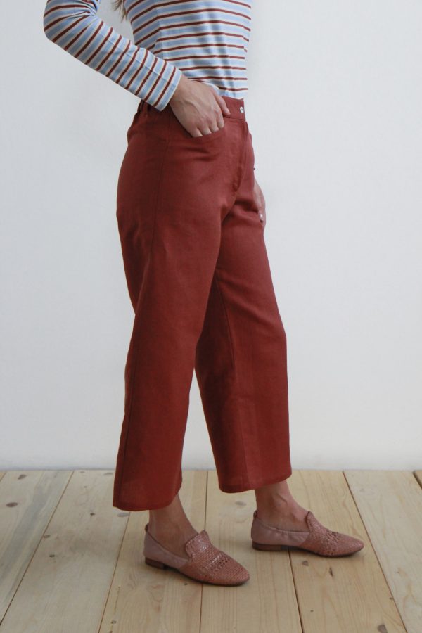 80,00 €Pantalone in misto lino e cotone. Lunghezza alla caviglia e gamba ampia e dritta. Chiusura frontale con zip coperta, bottone in madreperla, elastico in vita sul retro, tasche oblique sui fianchi e passanti per una cintura o un foulard. Altezza modellla: 1,73 e indossa taglia S Cura prodotto: Lavaggio a […]