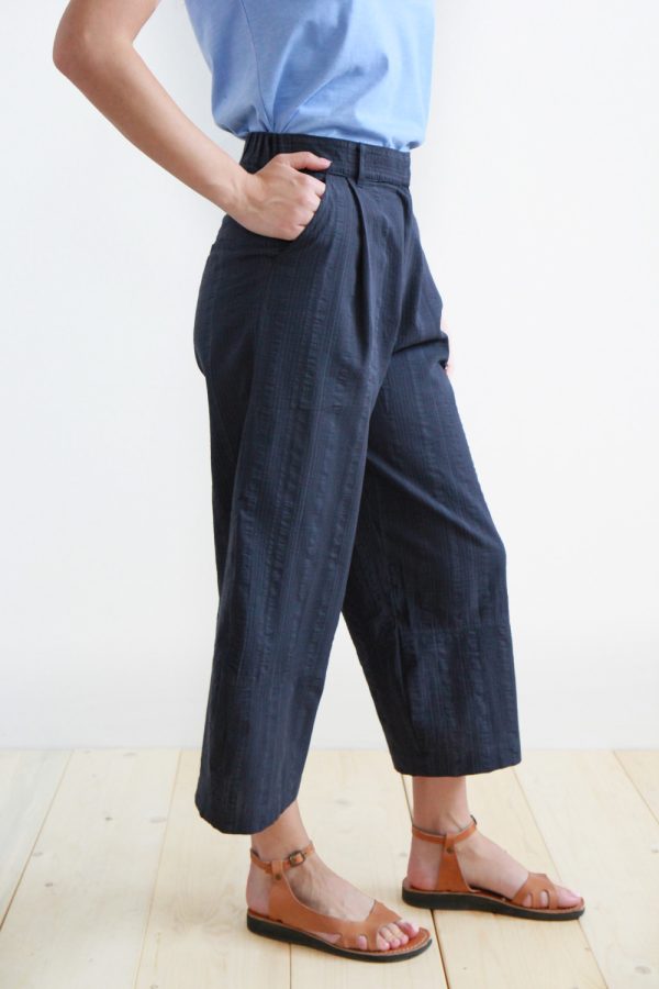 70,00 €Pantalone lungo alla caviglia in cotone seersucker a scacchi. Modello ampio caratterizzato da pinces sul davanti e dalla gamba larga. La vita è regolare sul davanti e con elastico sul retro. La chiusura è formata da una zip coperta e un bottoncino in madreperla; tasche alla francese. Pantalone dal taglio […]
