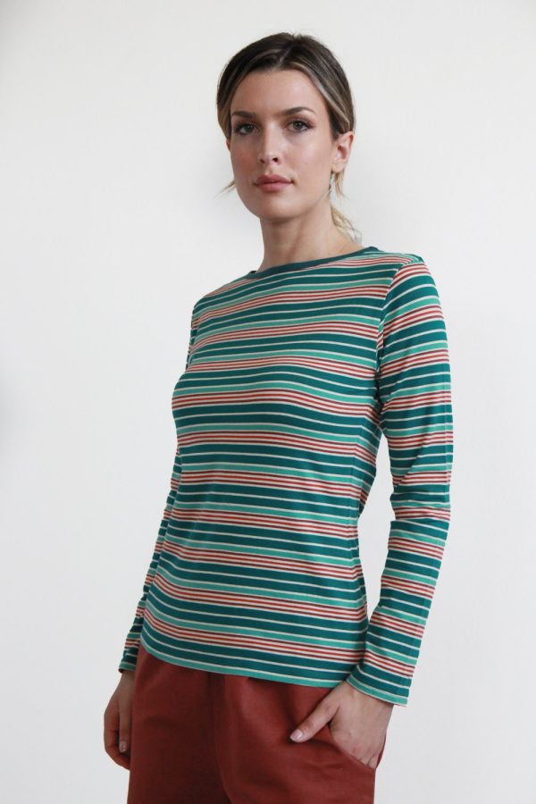 38,00 €T-shirt a manica lunga in morbido jersey di cotone biologico certificato GOTS elasticizzato. Modello dalla linea leggermente sfiancata e caratterizzato da scollo a barchetta. Questa maglia garantisce comfort e semplicità, ideale per un look rilassato e casual. Capo basic, must-have per il tuo guardaroba. Altezza modellla: 1,73 e indossa taglia […]