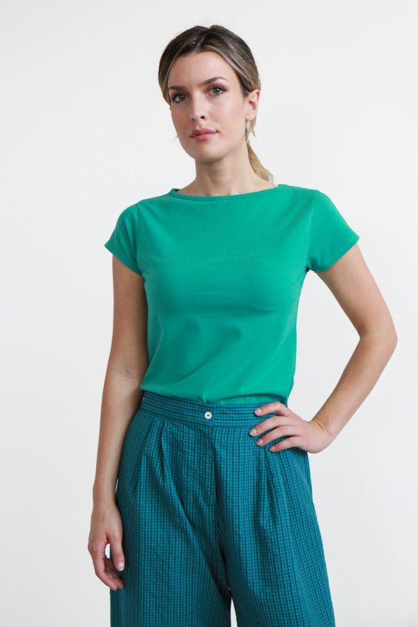 34,00 €T-shirt a manica corta in morbido jersey di cotone biologico certificato GOTS elasticizzato. Modello dalla linea leggermente sfiancata e scollo a barchetta. Capo basic, must-have per il tuo guardaroba. Altezza modellla: 1,73 e indossa taglia S Cura prodotto: Lavaggio in lavatrice temperatura massima 30°. Stiratura ad una temperatura massima di […]