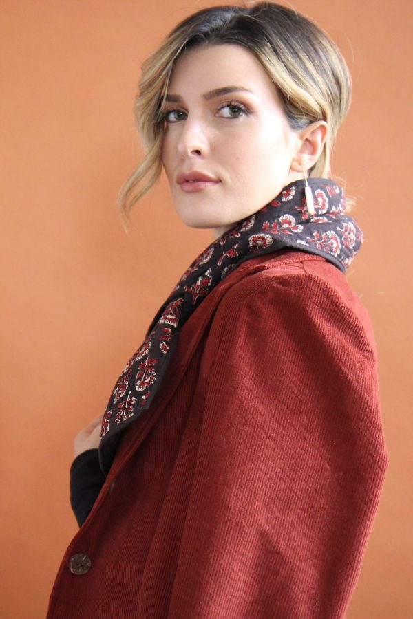 Giacca trapuntata in cotone stampato a mano block print disegno Pervinca. Questo capo è caratterizzato da un particolare collo montante, più alto nella parte dietro, che abbraccia la scollatura. La giacca dalla linea dritta e dalla vestibilità regolare è senza abbottonatura, si può portare aperta per un look più rilassato […]