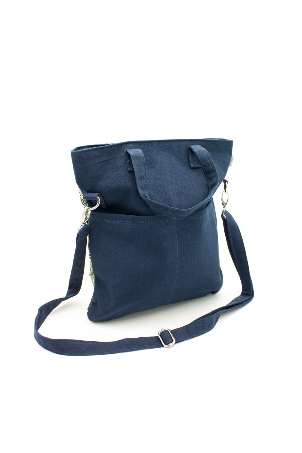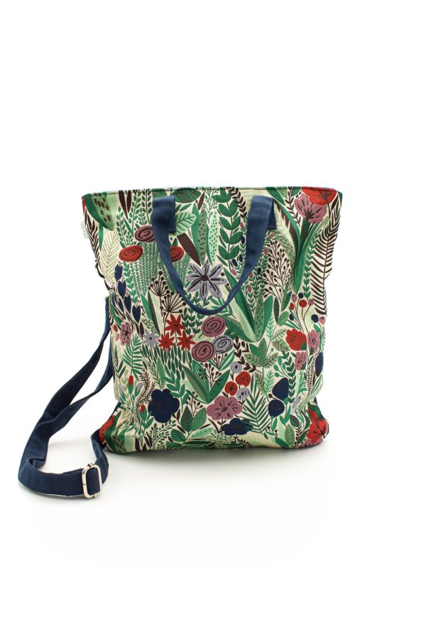 Borsa a mano grande in cotore broccato, fantasia floreale. Dotata sia di manici che di una tracolla rimovibile e regolabile. Chiusura con zip. Interno foderato con una tasca con zip. Due tasche sul retro.