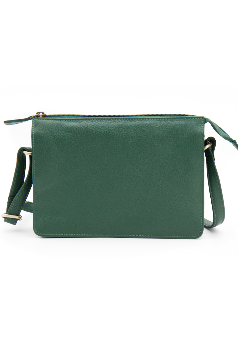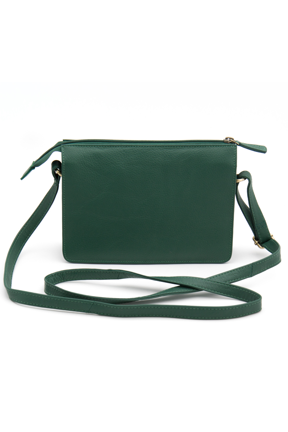 Borsa a tracolla piccola dalla forma rettangolare in morbida nappa bovina con chiusura a zip. Tracolla regolabile. Interno foderato in cotone a righe con tre comparti definiti, una tasca piccola con zip ed una senza.