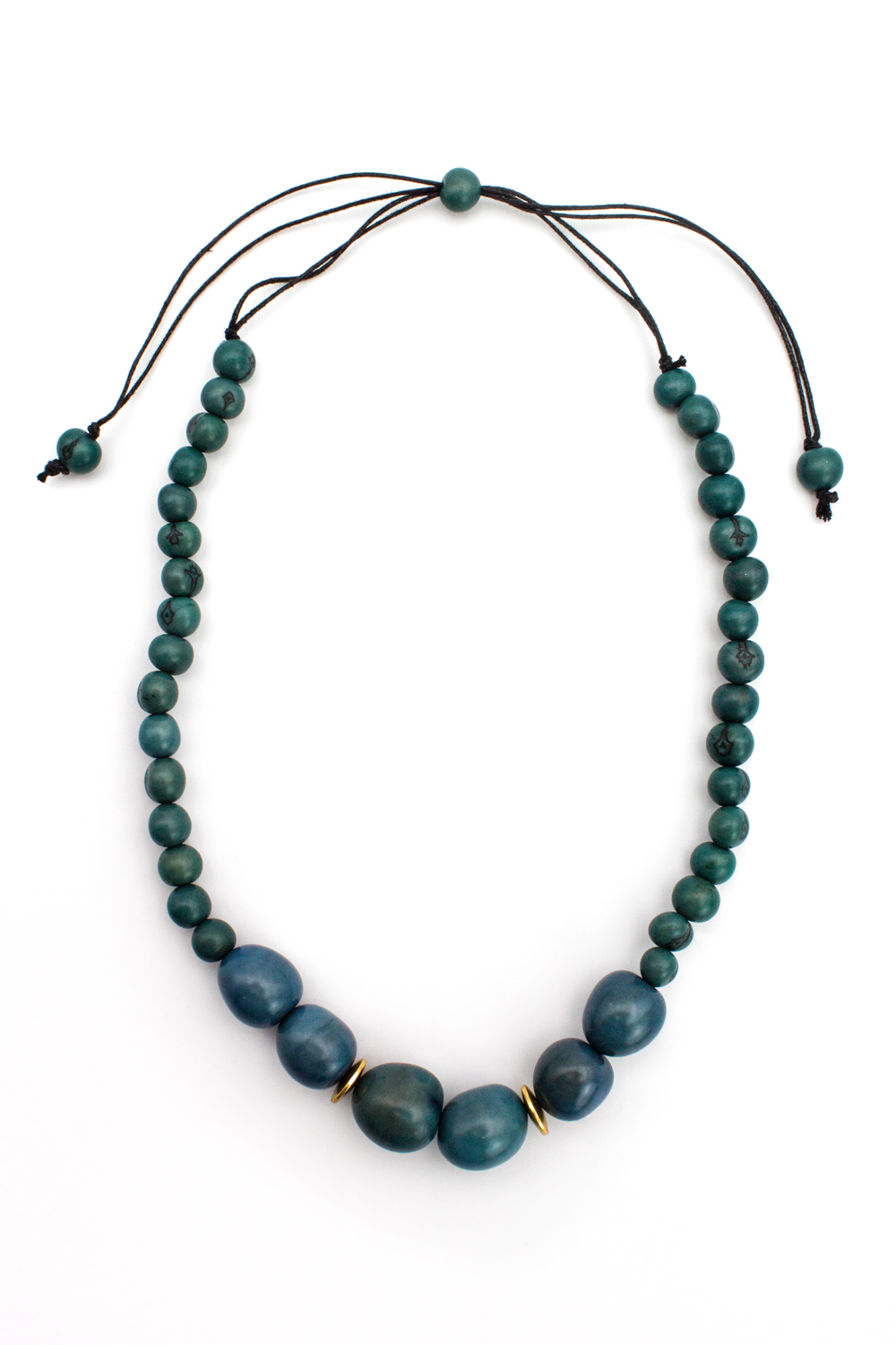 Collana con perle di chicon e perle di acai, due elementi in metallo placcato oro su doppio filo in cotone cerato regolabile.