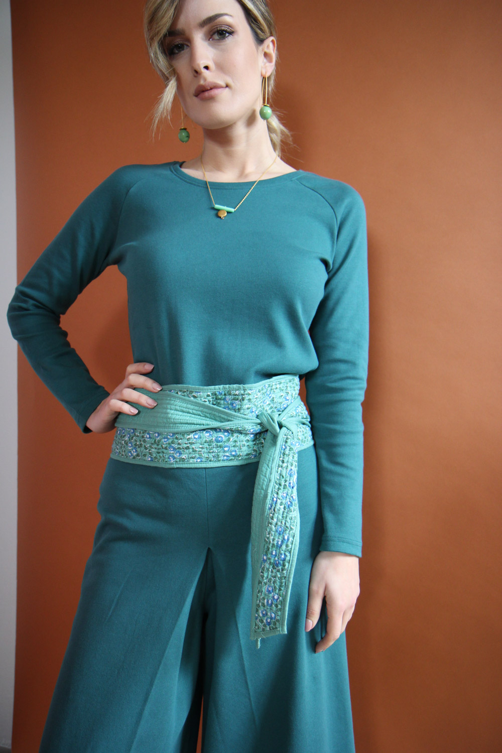 cintura fusciacca reversibile, trapuntata in cotone stampato a mano block print disegno Pervinca