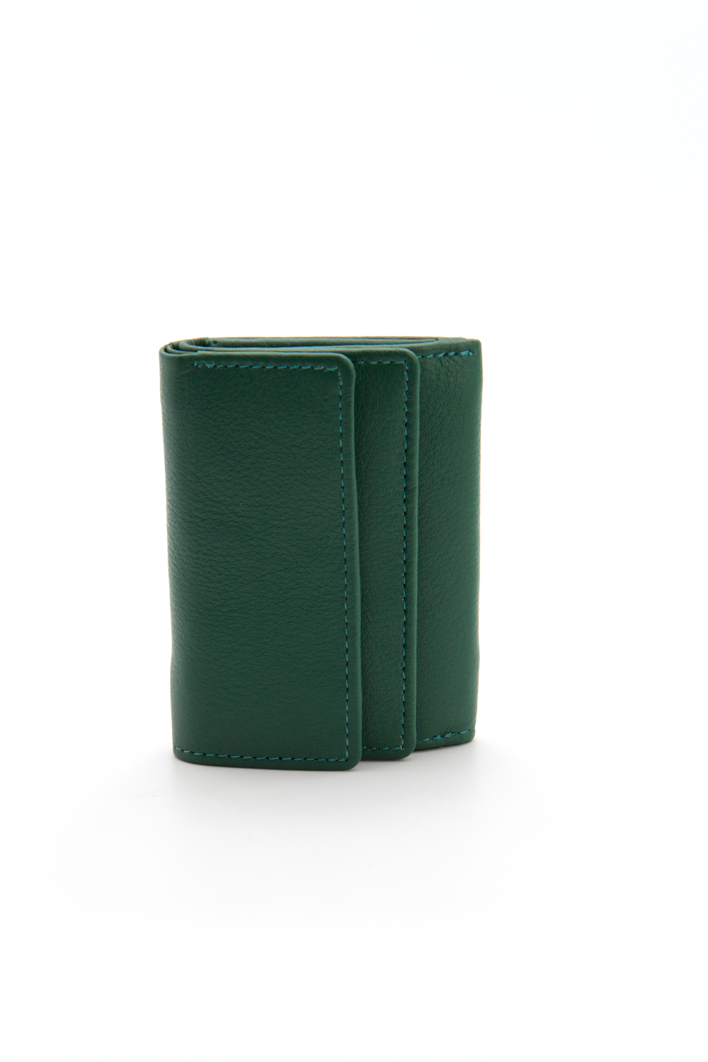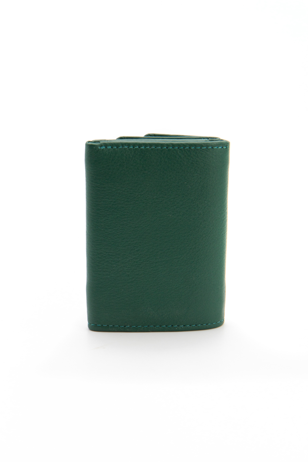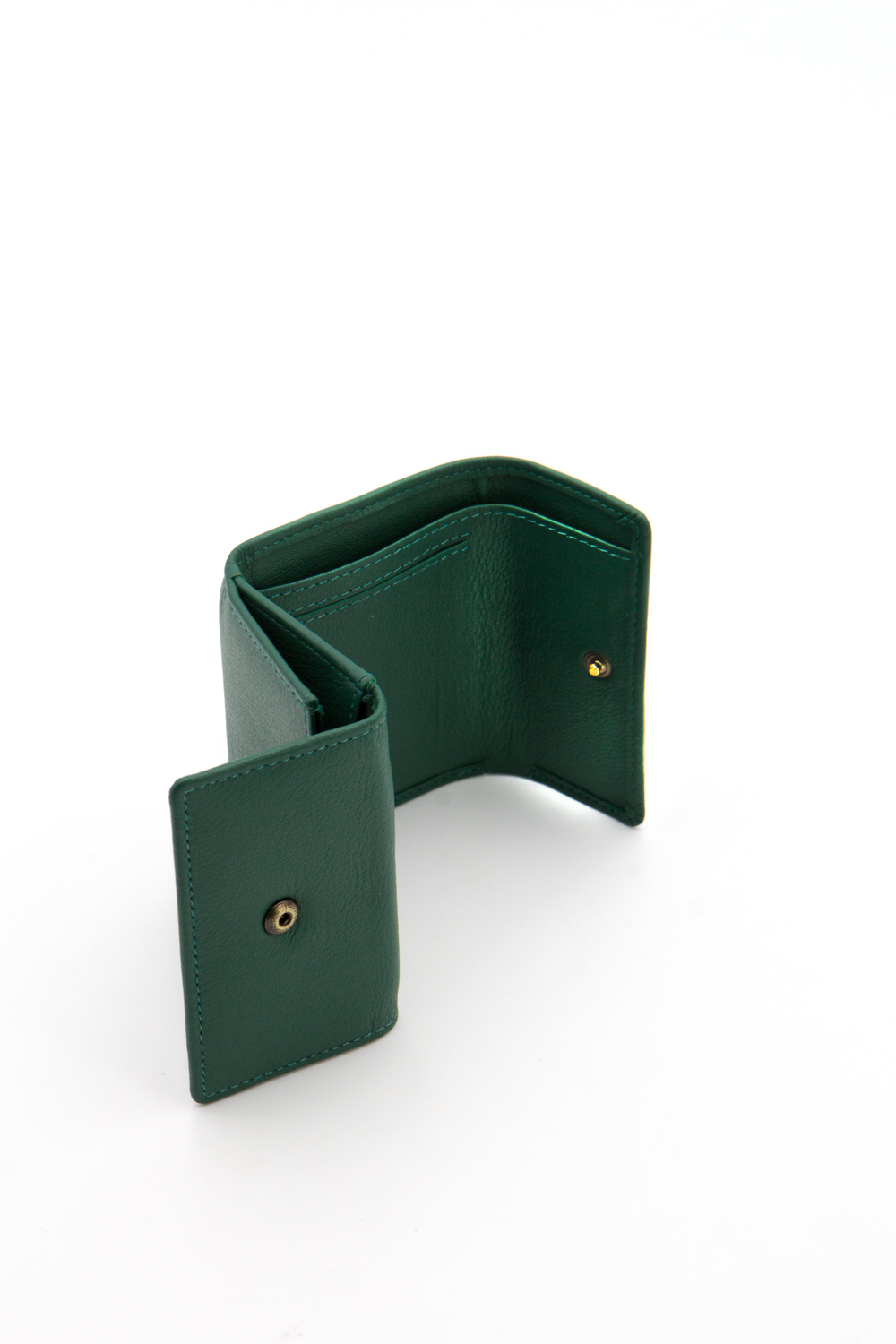 Mini portafoglio donna in morbida nappa bovina con uno scomparto a soffietto per le monete con chiusura a bottone. All’interno uno scomparto per le banconote ed un porta carte. Interno foderato in cotone a righe.