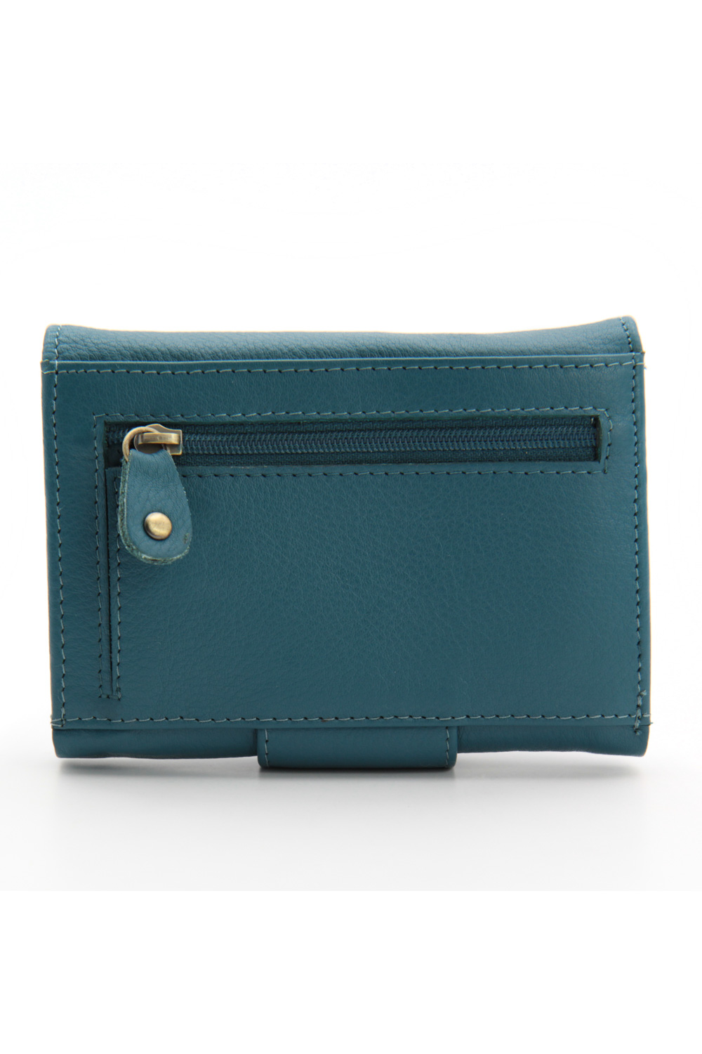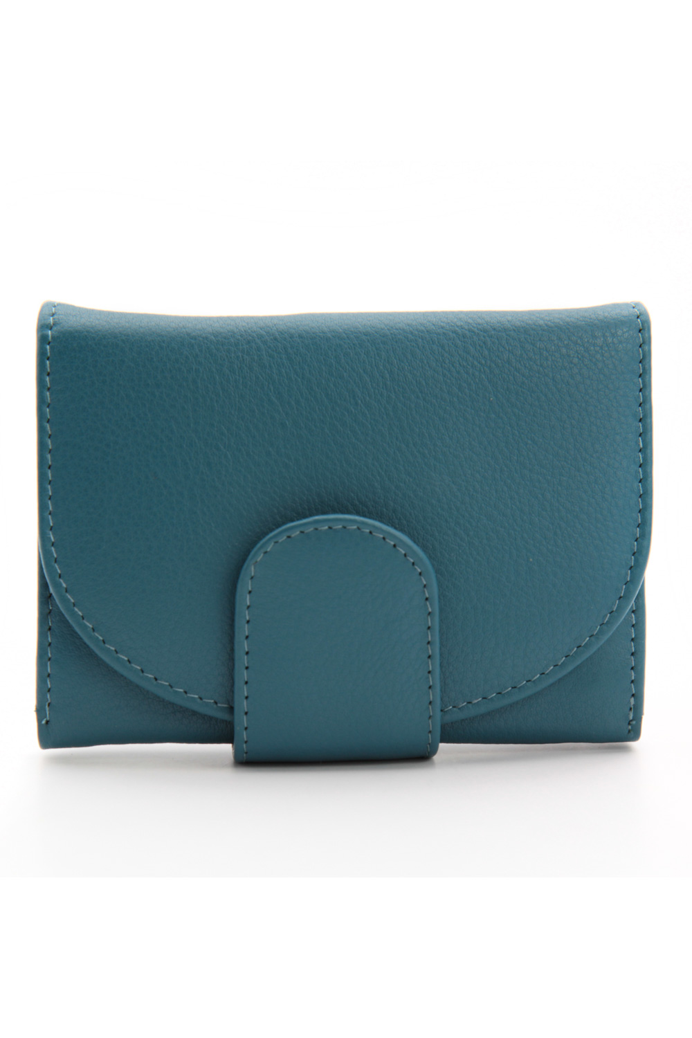 Portafoglio donna in morbida nappa bovina, chiusura con bottone a pressione. All’interno due scomparti per le monete con chiusura a zip, due scomparti per le banconote e vari porta carte. Interno foderato in cotone a righe.