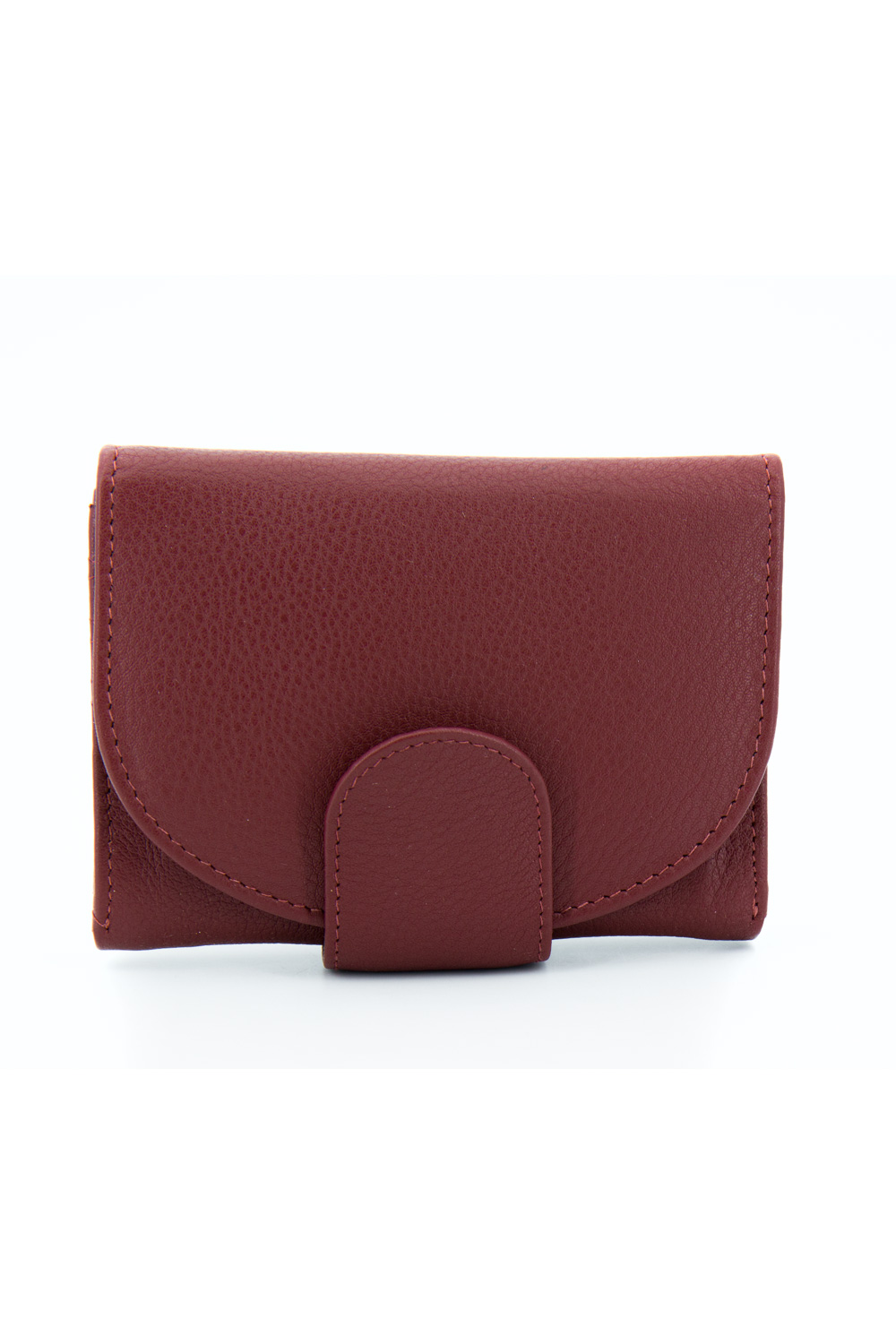 Portafoglio donna in morbida nappa bovina, chiusura con bottone a pressione. All’interno due scomparti per le monete con chiusura a zip, due scomparti per le banconote e vari porta carte. Interno foderato in cotone a righe.