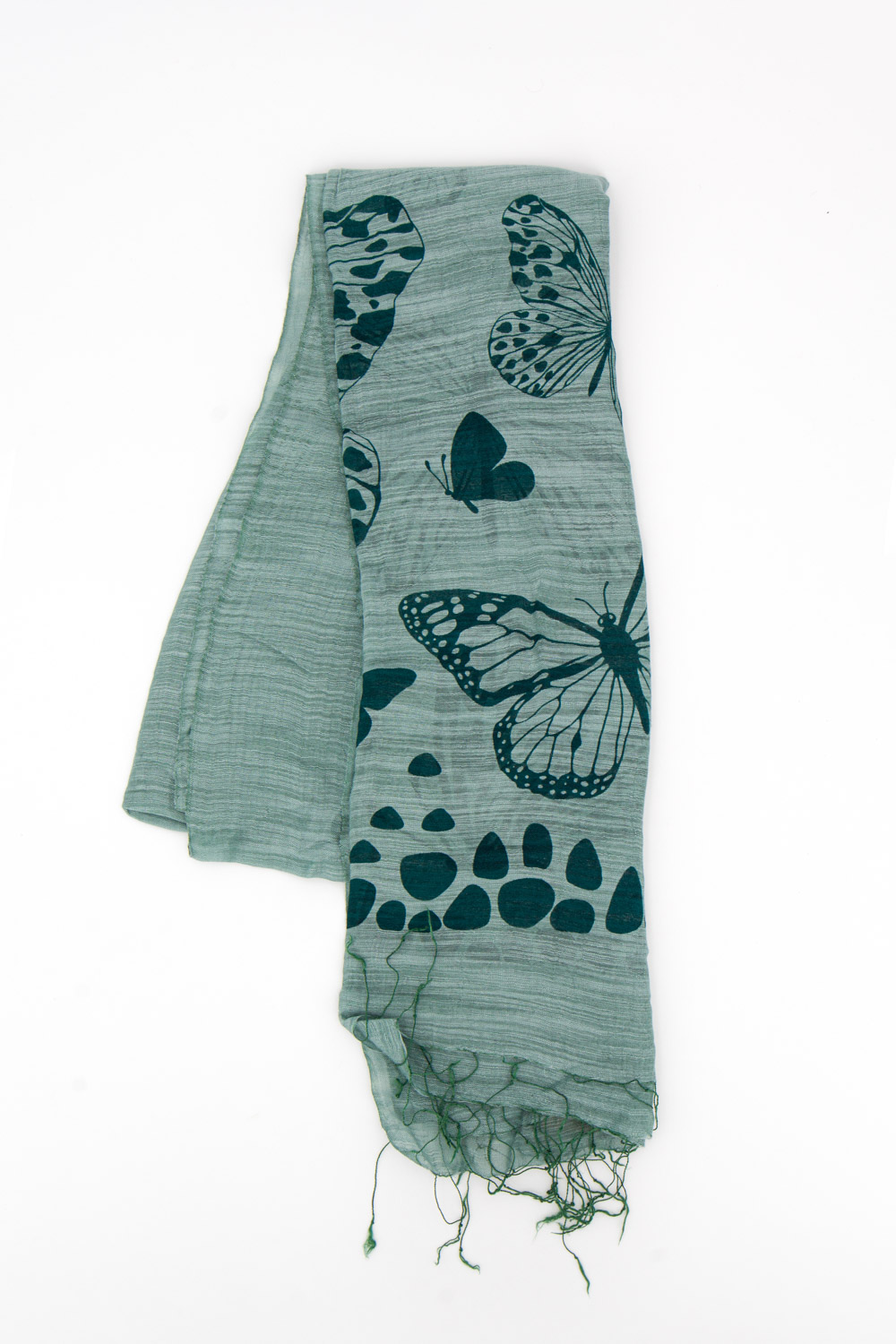 Sciarpa cotone e seta stampa farfalle verde salvia