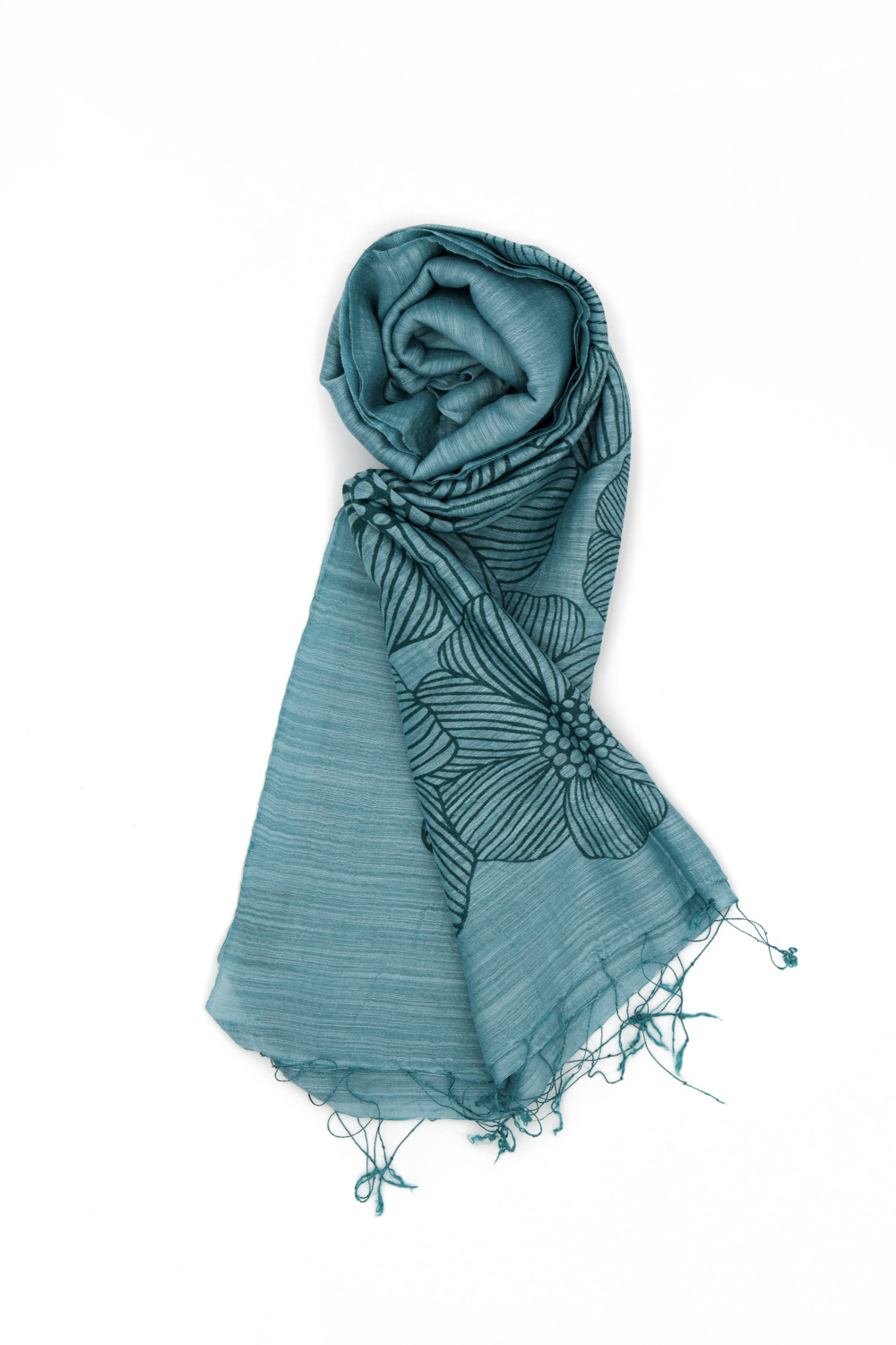 sciarpa in cotone e seta stampa Anemone, azzurro cielo