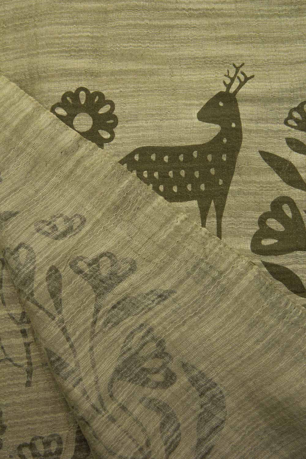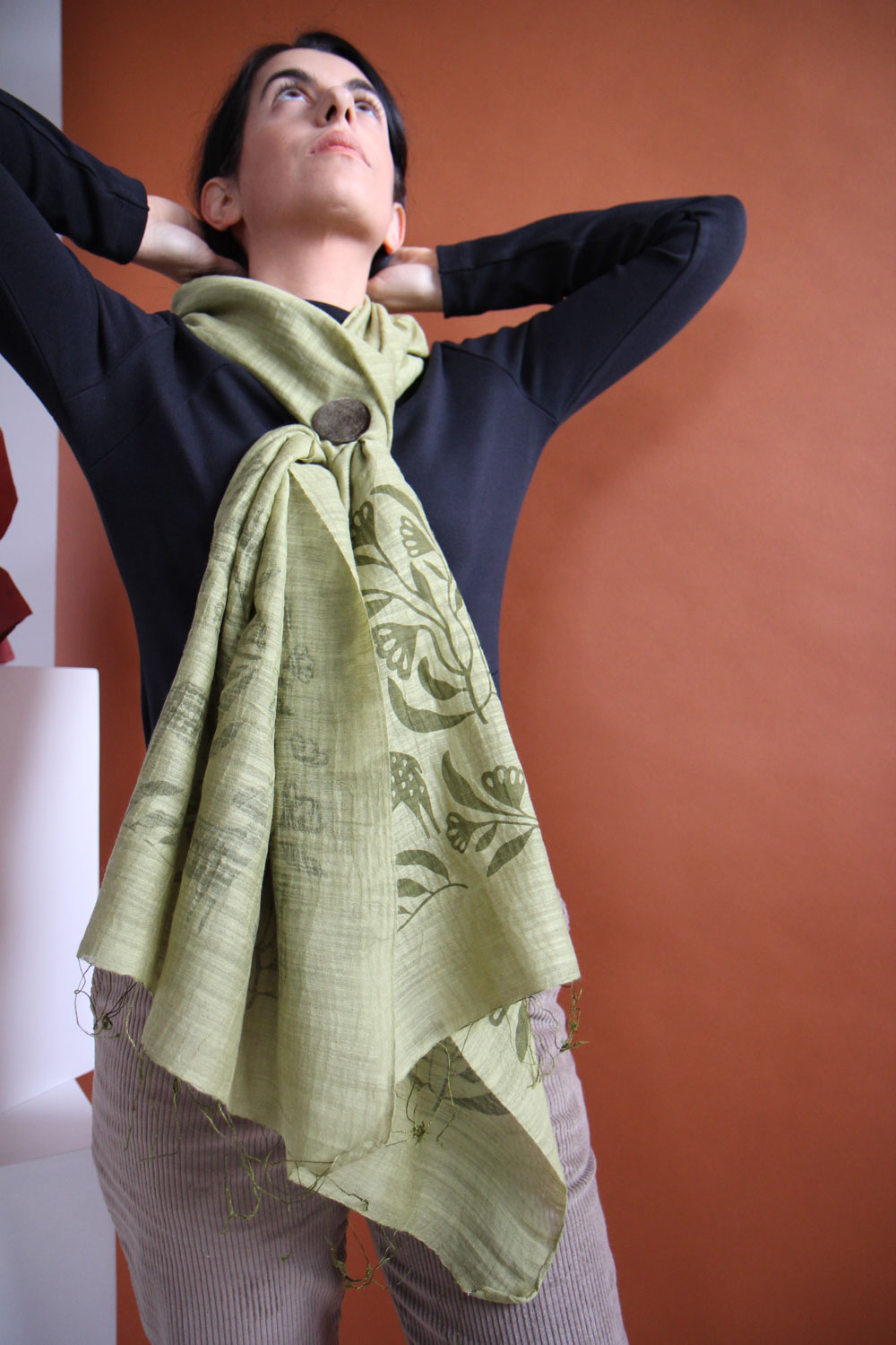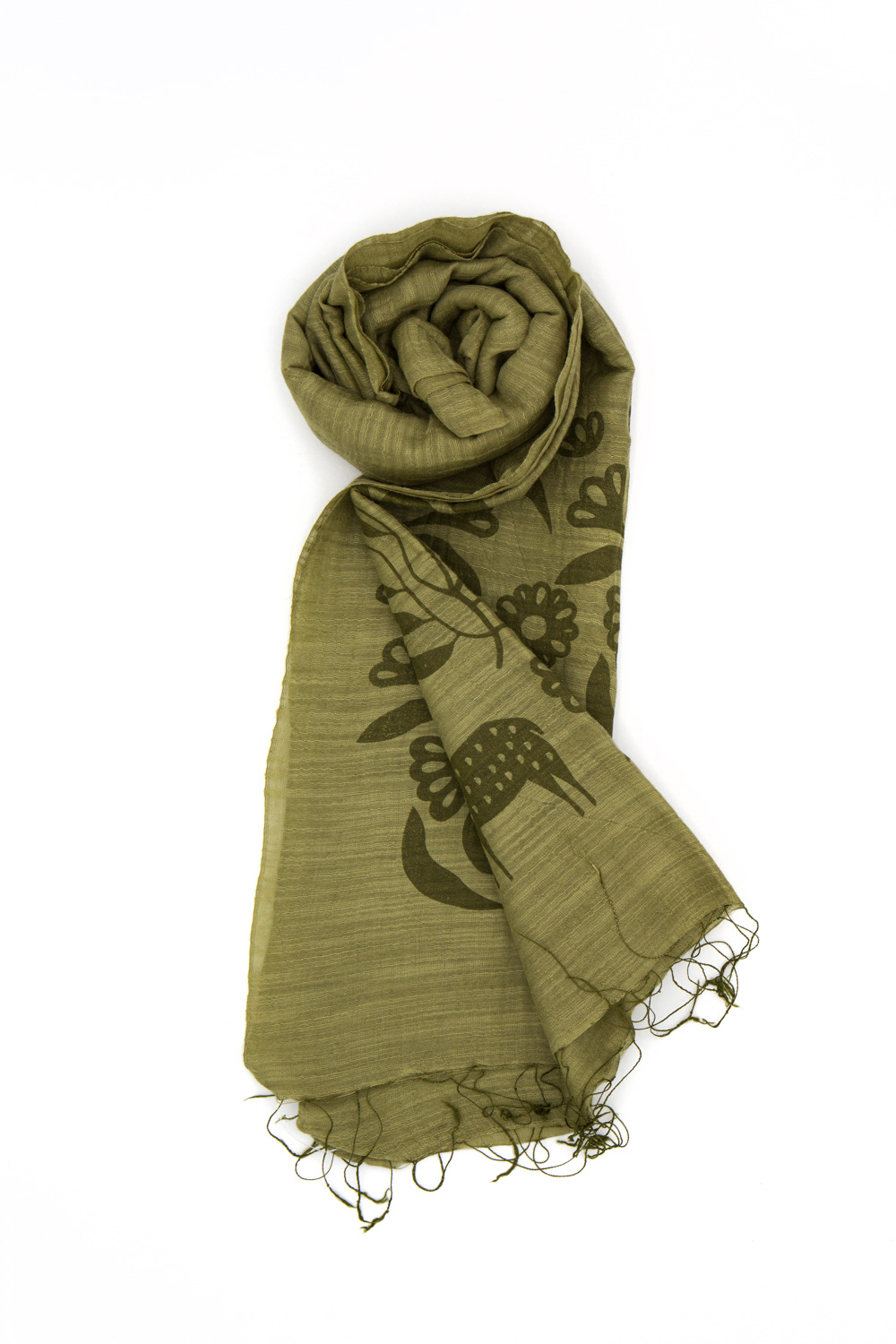 Sciarpa in cotone e seta stampa Foresta, verde oliva