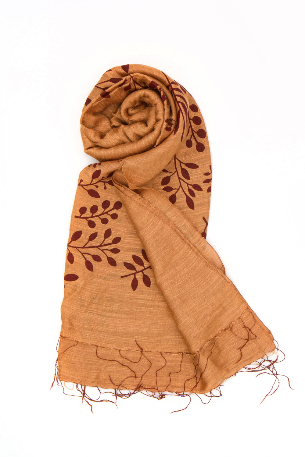 Sciarpa in cotone e seta stampa Spirale Fiori, mandarino