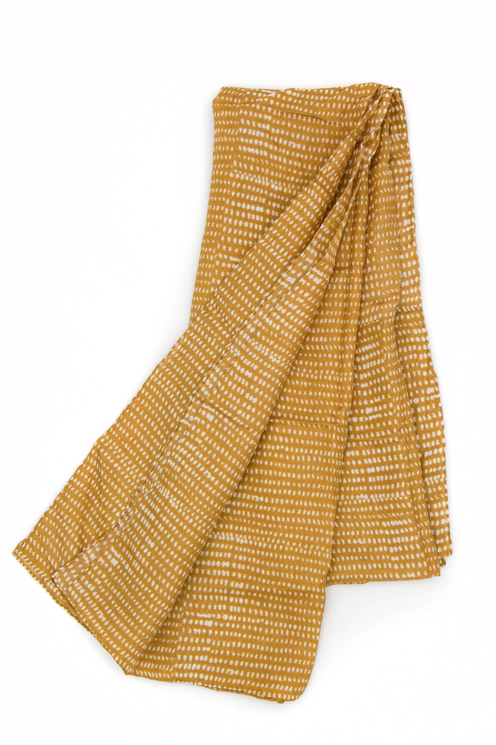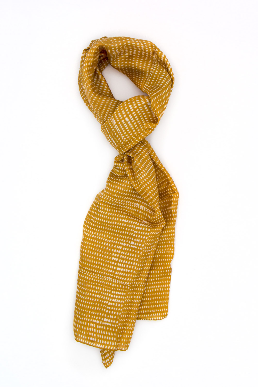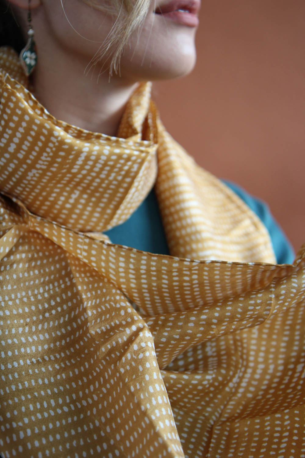 sciarpa in seta stampata, fantasia a pois bianco su ocra