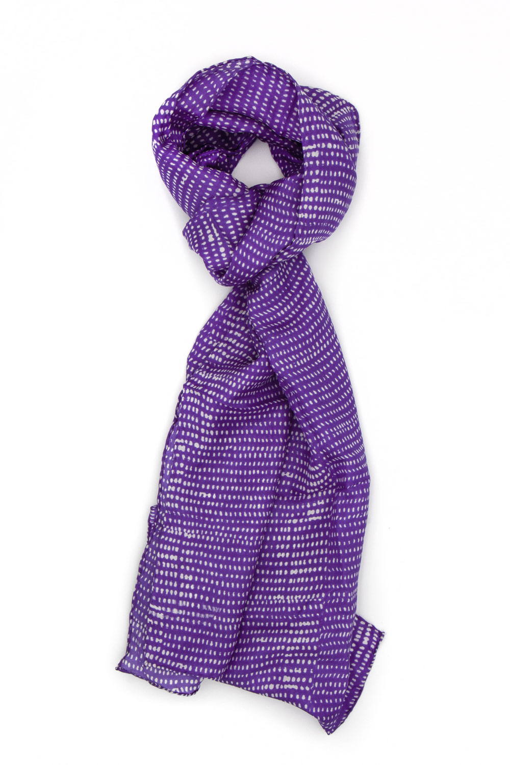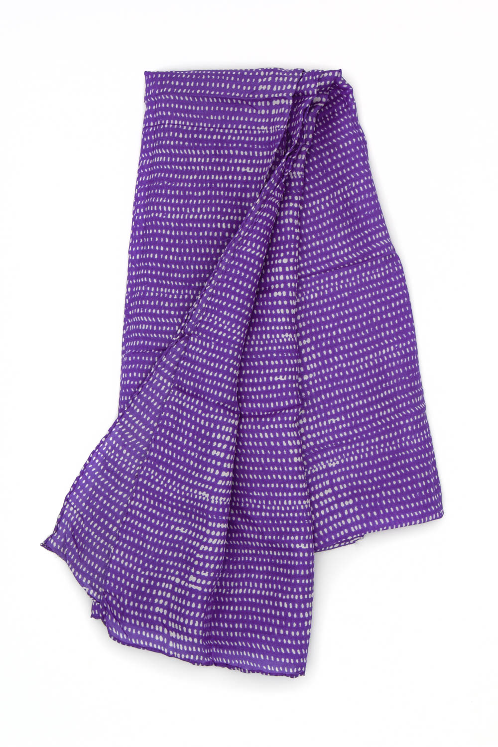 sciarpa in seta stampata, fantasia a pois bianco su viola