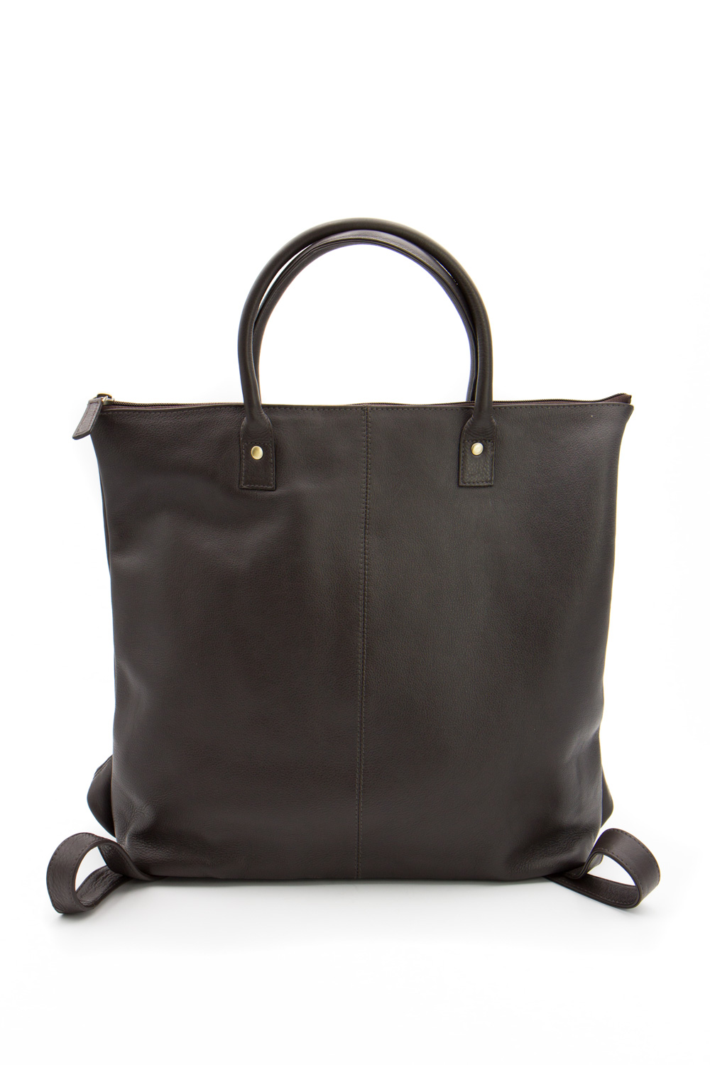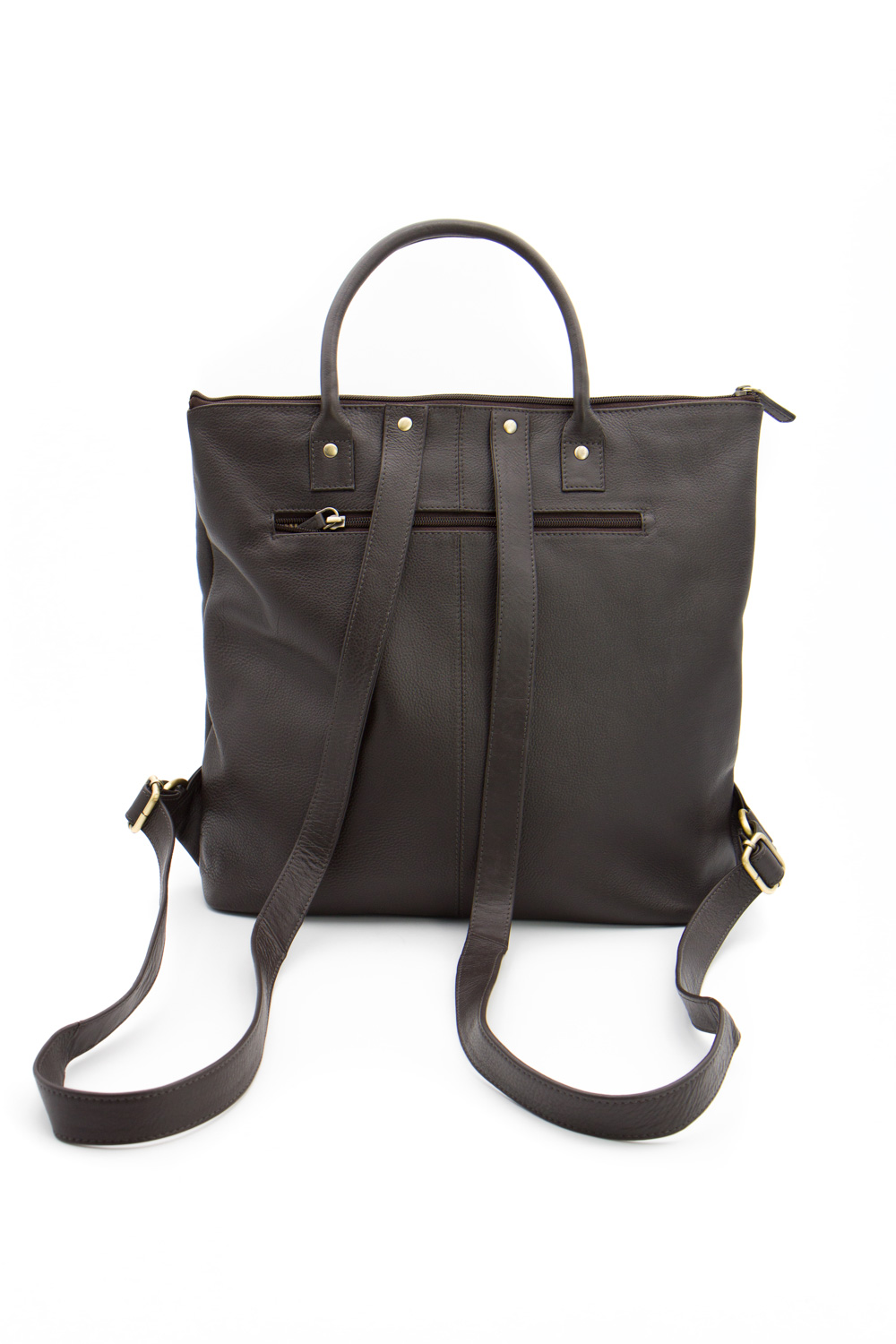 Zaino in morbida nappa bovina. Unico comparto, chiusura con zip in testa. Forma squadrata, presenta un fondo che assicura stabilità all’accessorio pur conservando una struttura morbida. Tasca piatta con zip sul retro. Interno foderato in cotone a righe con una tasca portaoggetti e una tasca con zip. Dotato di manici tubolari e spallacci regolabili.